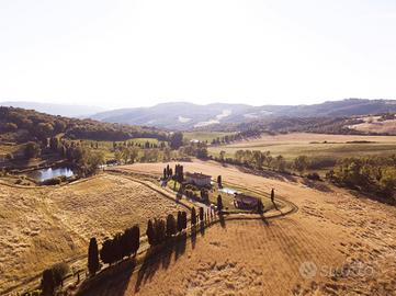 Villa di 500 mq con 5 camere da letto, 5 bagni, disposta su 2 piani, il giardino di 5000 mq ha una bella piscina panoramica, un forno in pietra ed un grande barbecue.