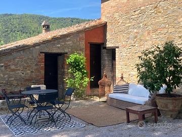 Affittasi incantevole casale seicentesco immerso in un oliveto, con splendida vista sulle colline umbre e Perugia. Situato a Montemelino (Magione) nei pressi del Lago Trasimeno, è il luogo ideale per rilassarsi in totale privacy e scoprire le meraviglie dell'Umbria, degustando le prelibatezze del territorio o esplorando i sentieri naturalistici, i percorsi di mountain bike e le escursioni a cavallo nelle vicinanze. Vieni a vivere un'esperienza autentica tra natura, cultura, sport e sapori!
