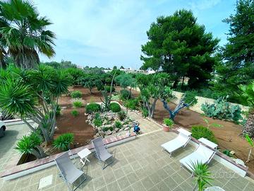 Immersa nel verde, a soli 500 m dal mare, questa spaziosa villa è la soluzione ideale per chi cerca una vacanza di relax e tranquillità. Dotata di tutti i comfort necessari, può ospitare fino a 5 persone e offre un ampio giardino con porticato esterno, perfetto per godersi pranzi e cene all'aperto. L'interno della villa è ben organizzato e composto da una sala pranzo con angolo cottura, un salotto con divano letto, due camere matrimoniali, in una anche un singolo, due bagni, uno esterno e uno interno. L'aria condizionata non è presente ma è accessoriata di pale al soffitto e gode di aria fresca essendo immersa nel verde. SERVIZI: Stoviglie complete; Servizio biancheria (a pagamento); Parcheggio privato interno. Non perdete l'occasione di trascorrere una vacanza indimenticabile nel cuore del Salento! Vi aspettiamo!