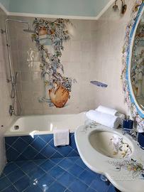 La suite è composta da un ampio soggiorno con TV a schermo piatto, zona pranzo e un comodo divano letto per 2 adulti, balcone con vista mare, ampia volta colorata di bianco e oro, bagno. Una camera da letto con letto matrimoniale Queen Size, balcone vista mare, piccola cabina armadio, bagno privato con vasca e doccia con finestra vista mare, aria condizionata. Una cucina indipendente con una piccola terrazza esterna.