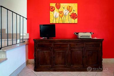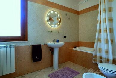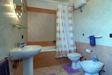 Affitto bellissima villetta di nuova costruzione a porto cesareo a pochi metri dal mare e dal centro. Appartamento composto su 2 livelli entrata con ampio giardino con posto auto -piano terra: ampio ingresso salone,sala da pranzo(climatizzata) bagno con piatto doccia piccolo giardino nel retro -cucina componibile attrezzata per cucinare comodamente -tavolo e sedie anche fuori per pranzare o cenare -primo piano:zona notte n.1 camera da letto matrimoniale+1 lettino(climatizzata) n.1 camera da letto matrimoniale+ 1 lettino (climatizzata) n.1 camera da letto con letto a castello TOTALI 8 POSTI LETTO n.1 ampio bagno con vasca -presente anche, lavatrice+stendino -tv - energia elettrica a parte a 0,35 a kw Possibilità di transfer con 9 posti da stazioni ferroviarie e aeroporti. Tel