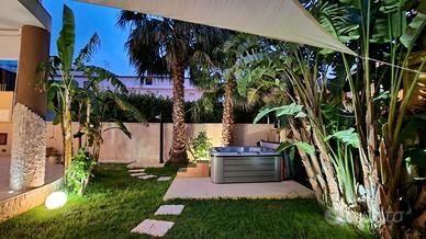 Posizione, vicinanza al mare e ai servizi di prima necessità, chic e comfort. Queste sono le caratteristiche principali che contraddistinguono Villa Davelia. Dotata di 3 camere da letto matrimoniali climatizzate, 3 bagni di cui uno ensuite ad una camera da letto, possibilità di ospitare ulteriori 2 persone grazie alla presenza di un divano letto matrimoniale, cucina completa di tutti gli elettrodomestici e di tutti gli accessori, due verande di cui una all'ingresso della villa preceduta da un meraviglioso giardino attrezzato dove potrete trovare anche una fantastica vasca idromassaggio per godervi i vostri momenti di relax. Nella veranda sul retro potrete trovare un bbq, una cucina esterna sotto una comoda tettoia e degli attrezzi ginnici per mantenervi in forma durante il vostro soggiorno. La villa dista appena 10 Km dalle magnifiche spiagge di sabbia dorata di Castellammare Del Golfo, Alcamo Marina e Balestrate, 13 Km dalle Terme e 20 Km dalla riserva Orientata dello Zingaro, a 40 Km da San Vito Lo Capo. A 4 Km potrete trovare lo svincolo dell'autostrada A29 Palermo Mazara del Vallo che vi permetterà di raggiungere facilmente ed in pochissimo tempo tutte le più importanti città siciliane come Palermo, Trapani ed Agrigento.
