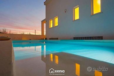 Splendida villa, con design accattivante, moderno e rilassante, a soli 300 metri dalla spiaggia, con piscina privata, idromassaggio e molti altri comfort; situata nei pressi del lungomare con i suoi numerosi ristoranti, bar, pub e pizzerie.
