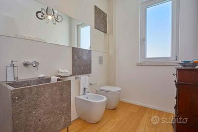 Al piano terra / seminterrato, si trova La Casa dei Margi (80mq), composta da 2 camere da letto, 2 bagni, soggiorno, una bella cucina e interessanti elementi di arredo.