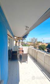 Proponiamo in affitto, per soggiorni di varia durata, questo bellissimo appartamento in Villa fronte-mare, in una location straordinaria sita nel cuore pulsante di Bibione Spiaggia. L'immobile è situato al primo piano di un grazioso villino su due piani, ubicato sul lungomare sulla rinomata via Luna. Un'entrata indipendente ci guida nella zona giorno, un arioso 'open space' affacciato sulla terrazza di 20 mq. esposta a sud, che comprende una moderna cucina a vista, l'area pranzo a sei posti ed il divano letto. Le camere della zona notte sono due, di cui la padronale con il letto a castello aggiunto. Il bagno è finestrato ed accessoriato con la lavatrice, un locale funzionale dotato di elegante e pratica cabina doccia. L'appartamento, così come tutta la villa, è stato ristrutturato recentemente. A disposizione degli ospiti un posto auto privato, l'aria condizionata e la TV satellitare. PRENOTA ORA LE TUE VACANZE AL MARE! Scrivici o chiamaci per un preventivo Tel.: www.agenziasabina.it info@agenziasabina.it