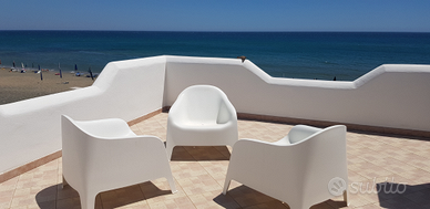 Completamente arredata, 3 camere matrimoniali condizionate, quarta camera con doppio letto, 3 bagni completi con doccia e bidet, soggiorno cucina condizionato e completo, patio, terrazzo con vista mozzafiato, solarium con gazebo e doccia, area esterna mattonata con barbecue e doccia. Posto auto privato. Fino a 12 posti letto.