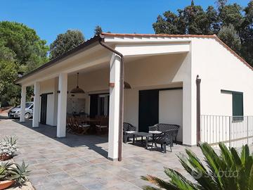 Villa Indipendente - 9 posti letto È su un unico piano, libera su 4 lati ed è circondata da un terreno di 4000 mq non recintato. E' composta da un ampio soggiorno con cucina, camera matrimoniale, camera con letto alla francese, camera doppia con letto a castello e camera tripla con tre letti singoli. Vi sono due bagni interni, doccia esterna con acqua calda, lavanderia con wc esterna. Le camere ed il soggiorno, ad esclusione della stanza con letti a castello, sono provviste di aria condizionata e zanzariere. Davanti alla villa si apre un ampio spazio pavimentato, ideale per pranzare e soggiornare all'aperto, ombreggiato da pini marittimi e abbellito da vasi di fiori e piante aromatiche. Grande portico rivolto a ovest, con piccola cucina esterna e tavolo fino a 12 posti. Tipo arredamento: - funzionale; moderno Servizi interni all'appartamento: - frigorifero con freezer, tv, piano cottura a induzione, forno, microonde, lavastoviglie, lavatrice, wifi; aria condizionata in tutti gli ambienti principali e zanzariere Servizi esterni all'appartamento: - spazio esterno; portico con cucina esterna; parco e giardino curato con piante aromatiche; posti auto a fianco alla villa; doccia esterna; lavanderia esterna con wc; BBQ su carrello Distanze: - dal centro del paese: 3 km; da Porto Azzurro: 7 km; da Portoferraio: 15 km; da Marina di Campo: 22 km; da Marciana Marina: 27 km; da Rio Marina: 20 km; dall'ospedale di Portoferraio: 15 km Distanze dalle spiagge: - dalla spiaggia di straccoligno 800 m; spiaggia di Capo Perla 700 m; spiaggia di Naregno 2,5 Km; spiaggia di Zuccale 5 km; spiaggia di Barabarca 5 Km; spiaggia dell'Innamorata 6 Km