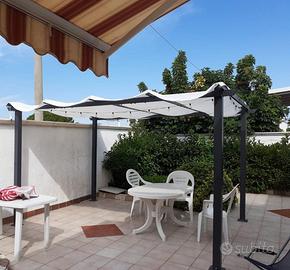 Circondata da un ampio giardino privato, la villa vanta una veranda esterna perfetta per momenti di convivialità e interni curati in ogni dettaglio.