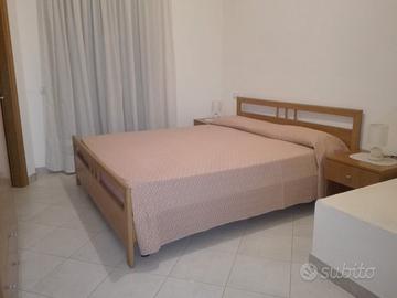 Villa con giardino 2 camere matrimoniali, 1 camera doppia, tutte le camere con bagno privato. Cucina attrezzata, veranda con tavoli e sedie per cene all'aperto.