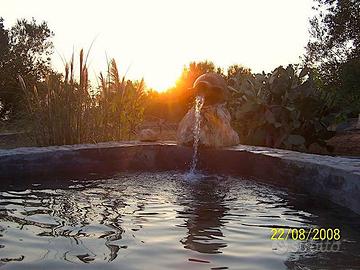 ABBIAMO A DISPOSIZIONE ANCHE ALTRE STRUTTURE NO AGENZIA 900 metri dalla prima spiaggia attrezzata, quella di Lido Venere 3 km dal LIDO LE MALDIVE DEL SALENTO A PESCOLUSE Splendida casa in pietra (trullo o 'pajara') immersa nella natura a Morciano di Leuca, località Torre Vado, distante dal mare 500mt scogli e 900 mt sabbia, vicino a strutture ricreative come ristoranti, trattorie, sale giochi, campi di calcetto, supermercati. La casa dispone di 2 camere da letto di cui una matrimoniale con ARIA CONDIZIONATA, sala con volta 'a stella', cucina in muratura e bagno. Dotata di LAVATRICE per la comodità degli affittatori. E' inoltre dotata di un ampio spazio esterno con caminetto e lavandini per le serate all'aperto sotto una tettoia e un maestoso albero di ulivo secolare. Dispone anche di patio coperto e di posti auto al coperto, doccia esterna, pozzo e 'piscina' (livello dell'acqua 50cm) con acqua che sgorga da un'anfora. Il terreno (+3000mq) e' totalmente recintato e quindi e' possibile lasciare liberi i vostri amati animali; sono inoltre presenti svariati alberi quali ulivi, noci, cycas e alberi da frutta (nespole, fichi d'India, uva, 4-5 varieta' di fichi, ecc..) tutti frutti abbondanti nel periodo estivo. E' dunque la soluzione migliore per chi vuole rilassarsi stando immersi nel verde e lontani dal caos. Il mare e' limpido, cristallino e pulito; la maggior parte di spiaggia e' libera ma attrezzata. C'e' la possibilita' di fare escursioni, lezioni sub, suggestive escursioni in barca con visita a diverse grotte, ecc.. (informazioni presso la 'ProLoco'). Vicino a Pescoluse e alle Maldive del Salento, alla bellissima spiaggia di Torre Pali e inoltre si raggiungono comodamente Santa Maria di Leuca (10min), Gallipoli e Otranto (20-30 min), e altre localita' balneari (spiaggia o roccia). Soprattutto nel mese di luglio e agosto, ogni sera si potra' assistere alle innumerevoli sagre di paese con musica e piatti tipici del posto. Via scalelle, 92, Torre Vado POSTI LETTO: 4