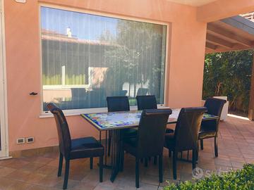 Villa Yasmine è un'elegante villa indipendente di 240 mq ad uso esclusivo, situata nel suggestivo Golfo di Patti, con una splendida vista sulle Isole Eolie. Perfetta per famiglie o gruppi fino a 8 persone, la villa offre ambienti ampi, luminosi e arredati in stile moderno, pensati per garantire comfort, privacy e relax. Uno dei suoi punti di forza è l'accesso diretto al mare: la spiaggia della Playa si raggiunge a piedi in pochi minuti attraverso un sentiero privato (circa 100 metri). Nelle vicinanze si trovano anche la spiaggia di Marina di Patti (900 metri) e la rinomata spiaggia di Mongiove, a soli 5 minuti di auto. La villa si sviluppa su tre livelli ed è composta da: o 4 camere da letto o 3 bagni o Ampia cucina attrezzata con zona lettura e divano letto o Spazioso soggiorno con zona pranzo e comodi divani All'esterno, un curato giardino perimetrale offre tutto il necessario per vivere al meglio le giornate all'aperto: area relax con salotto, tavolo da pranzo, barbecue e doccia esterna. Completano la proprietà posto auto privato e tutti i comfort per una vacanza all'insegna del mare e della tranquillità. Informazioni importanti per il soggiorno La villa è disponibile per soggiorni con una durata minima di 7 notti. Nel mese di agosto, la disponibilità è a partire dal giorno 25. Per garantire il massimo comfort e la qualità degli ambienti, non è consentito l'accesso agli animali, neppure di piccola taglia. Codici identificativi: CIR: 19083066C263687 CIN:IT083066C2EAFH3GPM Per ulteriori informazioni o richieste, è possibile contattare direttamente la proprietà al numero 345 5912203, anche tramite WhatsApp.