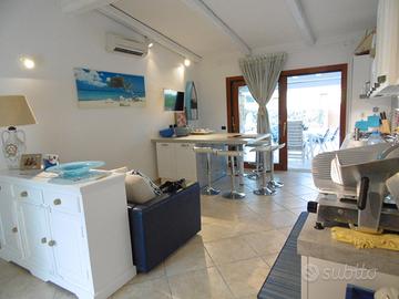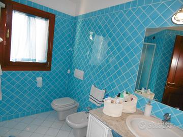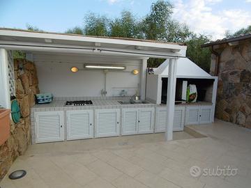 Nel centro di Porto San Paolo, ma all'interno di un residence molto tranquillo, villa indipendente con giardino terrazzato su 3 lati. Grande zona giorno con zona pranzo, divano letto e cucina a vista, completa di tutto. Le camere da letto sono tre, e due i bagni. Grande veranda attrezzata cn lettini prendisole, divani, barbecue. Aria condizionata. Vicino a tutto, 1 km dalla spiaggia.