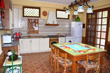 Villa su due elevazioni , piano terra zona giorno con ampio salone , grande cucina , bagno con doccia + uno sgabuzzino.
