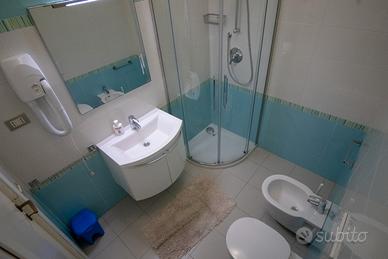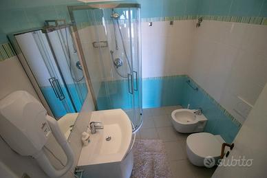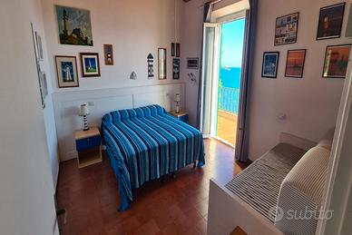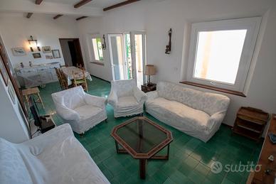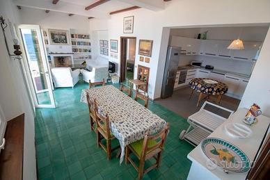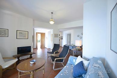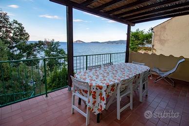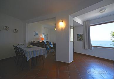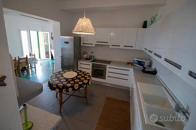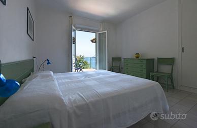 L'appartamento è disposto su due livelli. Piano terra composto da cucina e ampia area soggiorno-pranzo, camera matrimoniale con ingresso anche dal giardino, bagno con doccia, ampio porticato vista mare. Al piano superiore zona notte composta da due camere triple e una matrimoniale, bagno, bagno con doccia e ampia terrazza vista mare. Nell'abitazione sono presenti due brandine all'occorrenza per bambini fino a 10/12 anni.