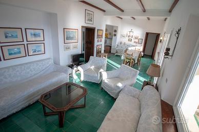 E' composto da cucina e ampia zona soggiorno-pranzo con divano letto matrimoniale, due camere matrimoniali (una con bagno interno + all' occorrenza eventuale brandina), una camera doppia, bagno con doccia, bagno di servizio (solo WC e lavello), ampia terrazza arredata vista mare.