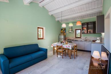 La dependance adiacente alla villa può ospitare 4 persone ed è composta da un soggiorno-cucina con divano, TV e tavolo da pranzo, due camere matrimoniali ed un bagno con doccia.