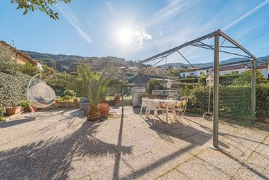 Villa Indipendente 7 posti letto Si sviluppa tutta su di un piano, terra rialzato. Ha in proprietà esclusiva un giardino piantumato e delle aiuole con piante grasse, attrezzato con mobili da giardino e tavolo per mangiare all'esterno, un posto auto all'interno della proprietà che è completamente recintata e chiusa da cancello. Internamente a disposizione degli ospiti un'ampia zona living composta da un luminoso salone con divani, camino e tv; sala da pranzo ed ampia e ben accessoriata cucina. La zona notte si compone di due camere, una matrimoniale con 3° letto in camera ed una seconda matrimoniale padronale. I bagni sono due, uno con vasca ed un con doccia. Come spazi en plein air non avrete che l'imbarazzo della scelta: oltre all'ampio giardino, un cortile attrezzato con BBQ ed un terrazzino sul retro dell'immobile con uscita dalla cucina. Servizi interni all'appartamento: - grande tv in soggiorno, frigorifero con freezer, fuochi a gas, forno elettrico, microonde, lavatrice, lavastoviglie, doppio bagno, aria condizionata a pagamento, asciugacapelli Servizi esterni all'appartamento: - posto auto all'interno della proprietà, cortile attrezzato, terrazzino, BBQ, ampio giardino esclusivo Distanze dalle spiagge: - dalla spiaggia di Marciana Marina: 450 mt - dalla spiaggia di Sant'Andrea: 12 km - dalla spiaggia della Biodola: 16 km - dalla spiaggia di Marina di Campo: 16 km