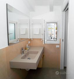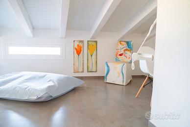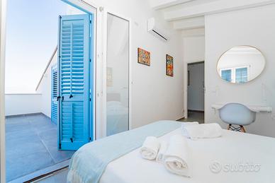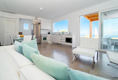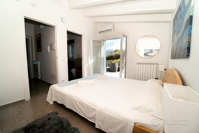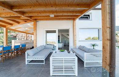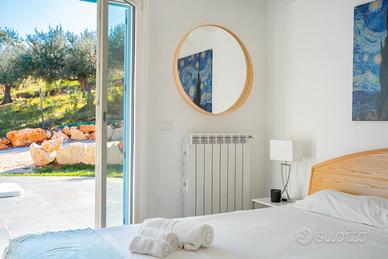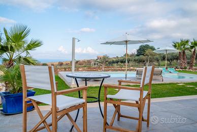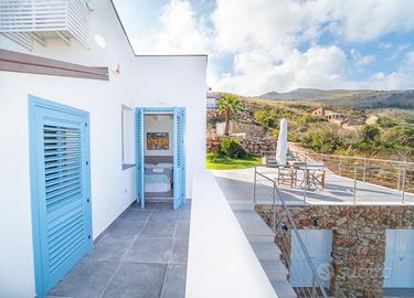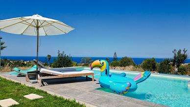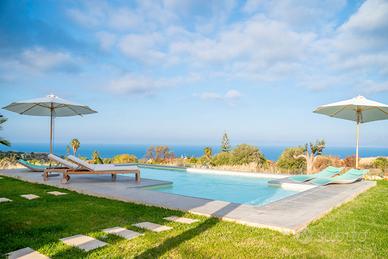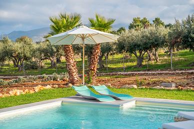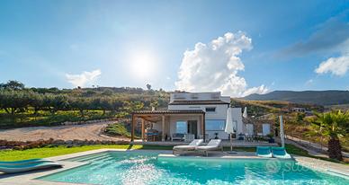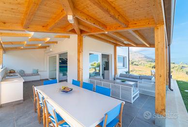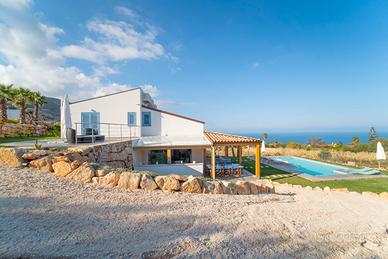 Villa Majestatis si trova molto vicino a Scopello in una tranquilla zona rurale della Sicilia nord-occidentale con uno sfondo montano e una vista mozzafiato sul Mar Mediterraneo. La proprietà di nuova costruzione è unica nella zona e dispone di arredi per lo più completamente bianchi e di una moderna cucina SMEG italiana con spruzzi di colori pastello locali, piastrelle artigianali e vasi. C'è una terrazza per lo yoga con pergolato per rilassarsi o allenarsi in fondo al giardino che si estende per circa 100 metri oltre la piscina di fronte alla villa verso l'oceano. Due ampie terrazze a destra e a sinistra della villa fanno sì che ciascuna delle tre camere da letto con bagno interno sia accessibile separatamente dall'alto. Le ampie finestre scorrevoli a tutta altezza nell'ampio e arioso soggiorno si aprono sulla terrazza al piano terra, sulla piscina e sulla zona barbecue permanente.
