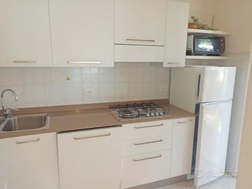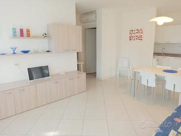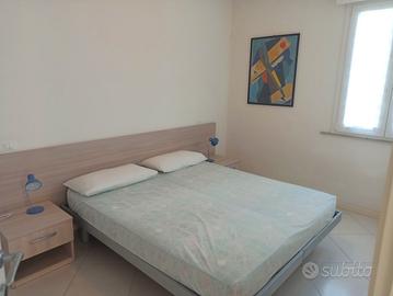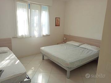Trilocale situato a 500 m dalla spiaggia in centro a Lignano Pineta, in zona tranquilla ma a ridosso del treno dei negozi. Appartamento situato al piano rialzato di una palazzina con poche unità, composto da camera matrimoniale con terzo letto, seconda camera con due letti,soggiorno con angolo cottura e divano letto doppio, bagno finestrato con box doccia, TV, terrazzo abitabile attrezzato, lavatrice, aria condizionata. Posto auto riservato. appartamento ristrutturato e ben arredato.