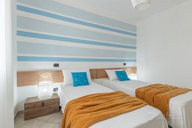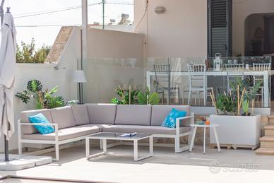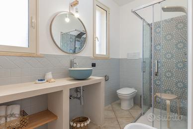 VILLA PALMA (Codice Immobile: TL01) - Villa con piscina in affitto in Salento, a poca distanza dalle spiagge belle di Torre Lapillo, Porto Cesareo e Punta Prosciutto. Villa Palma ha uno spazio esterno con giardinetto e posto per le auto nella parte anteriore e un giardino sul retro dove è presente la piscina a uso esclusivo degli ospiti. Una piscina 3x7 metri con spazio adiacente attrezzato con tavoli e sedute per l'esterno, doccia esterna, barbecue per trascorrere piacevoli momenti in relax e in riservatezza. La villa si sviluppa su due livelli: ampio soggiorno, cucina e bagno al piano terra; tre camere da letto e bagno al piano primo. Ottima la location in Villaggio Boncore, alle porte di Torre Lapillo: ideale per scoprire le spiagge e le località più belle del Salento. L'immobile è dotato di internet wifi gratuito. L'immobile si sviluppa al piano terra e al piano primo. Animali: non ammessi. Biancheria bagno / letto: l'alloggio viene consegnato provvisto di biancheria bagno / letto inclusa nel prezzo. - Disposizione posti letto: camera letto 01 (letto matrimoniale), camera letto 02 (due letti singoli), camera letto 03 (due letti singoli), soggiorno (due divani letto matrimoniale) - Composizione bagno: bagno 01 (wc, bidè, box doccia), bagno 02 (wc, bidè, box doccia) - Aria condizionata: l'alloggio è dotato di aria condizionata in ogni camera da letto e in soggiorno - Posto auto: l'alloggio dispone di posto auto gratuito incluso - Fornitura di acqua: l'alloggio è allacciato alla rete dell'Acquedotto Pugliese DISTANZA SPIAGGE E SERVIZI PRINCIPALI - 500 metri dai servizi principali - 1,5 km dalla spiaggia di Torre Lapillo - 7 km dalle spiagge di Punta Prosciutto