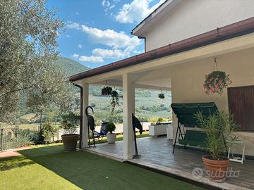 affittasi anche per brevi periodi, villa su due piani panoramica ,arredata come da foto allegate con vasca idromassaggio esterna ,amaca completa di elletrodometici( lavastoviglie, lavatrice..) fontana decorativa ,camino ,provvista di balcone adiacente alla camera padronale .a un ora da Roma ,nel cuore verde d'Italia .vicino a vari centri di attività Outdoor come rafting ,trekking, torrentizio.... 13 posti letto .