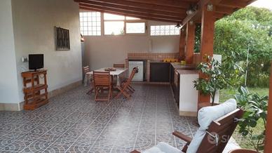 Affacciata sul mar Ionio, in una delle più belle località della Sicilia orientale, a Fontane Bianche, in provincia di Siracusa, è situata una gradevole casa vacanza, arredata con tutti i comfort. La villetta si trova a meno di dieci minuti a piedi da una delle spiagge sabbiose più belle della nostra zona. L'immobile è dotato di ampie verande con cucina esterna in muratura ed un giardino nel quale è stata costruita una splendida piscina privata con solarium attrezzato per il relax ed il benessere degli ospiti. La casa è composta da una cucina-soggiorno, da due camere da letto (entrambe climatizzate) ed un bagno, ideale per un massimo di 4 persone. Tutte le finestre sono dotate di zanzariere. La villetta è completa di stoviglie, frigorifero, lavabiancheria, stendi biancheria, barbecue all'esterno.