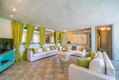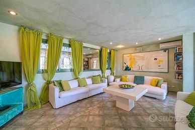Villa (12/14 posti letto) La villa si compone di un corpo centrale e una dependance, quest'ultima articolata su due piani, per complessivi 14 posti letto. La parte centrale si sviluppa interamente al piano terra ed è composta da uno spazioso soggiorno ben arredato con poltroncine, comodi divani e zona tv, circondati da grandi vetrate che donano al soggiorno una fantastica illuminazione naturale, inoltre queste vetrate danno accesso ad una terrazza panoramica per godere di una vista mozzafiato. Grande cucina completamente accessoriata, tre camere da letto (una matrimoniale e due a due letti singoli) ciascuna con un proprio bagno a disposizione. Nella parte esterna della villa si trovano il grill in muratura, doccia (solo fredda), ampia terrazza arredata con tavoli, sedie, lettini prendisole, gazebo, posti auto privati, locale tecnico con lavatrice. Attraverso una scalinata esterna si accede alla depandance, che a sua volta è composta da quattro camere da letto (di cui due matrimoniali e due a due letti singoli) ciascuna con il proprio bagno con box doccia e servizi privati, per un totale di ulteriori 8 comodi posti letto. Servizi interni all'appartamento: - lavastoviglie; piano cottura 5 fuochi; forno elettrico; frigorifero e congelatore; minipimer; toaster; lavatrice; aria condizionata in ogni ambiente; asse da stiro; ferro da stiro; binocolo; tv color 55' con ricezione canali Tv-Sat; Wi-Fi; grill in muratura; posti auto privati; doccia esterna (solo fredda); grande terrazza arredata; parco privato Distanze: - dal centro di Capoliveri: 2 km; da Porto Azzurro: 5 km; da Portoferraio: 15 km; da Marina di Campo: 22 km; da Marciana Marina: 27 km; da Rio Marina: 16 km Distanze dalle spiagge: - dalla spiaggia di Naregno: 500 mt; dalla spiaggia di Barabarca: 3,5 km; dalla spiaggia di Zuccale: 3,5 km; dalla spiaggia di Madonna delle Grazie: 4,5 km; dalla spiaggia di Morcone: 5 km; dalla spiaggia di Lido di Capoliveri: 5 km; dalla spiaggia dell'Innamorata: 6 km