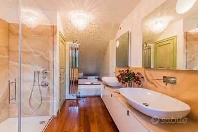 - 2 camere matrimoniali, entrambe con accesso diretto ad un bagno rivestito di mosaico composto da doppio lavandino, vasca idromassaggio e doccia.