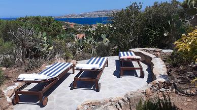 - Ampia terrazza con splendida vista mare e su Caprera, con tavolo, sedie e calcetto. Copertura in castagno e canne, Impermeabilizzata