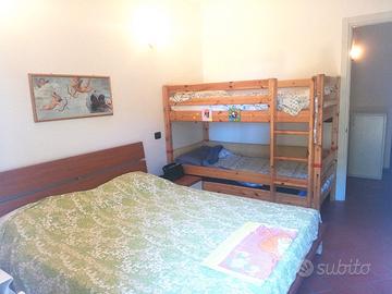Composto da : camera matrimoniale + letto a castello, camera tripla, 2 bagni, cucina e sala a piano terra.