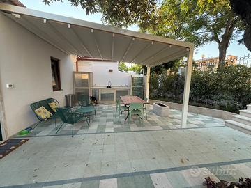 Privato affitta bellissima villa, ampia, luminosa e con giardino direttamente sulla spiaggia, in posizione centralissima. Tratto di spiaggia privata fronte casa con lettini, sdraio e ombrelloni forniti da noi nel prezzo. La casa ha 3 camere da letto ( max 8 posti letto), cucina , bagno con doccia e ampia veranda con grande tavolo da pranzo e divano. Il giardino è dotato di un secondo bagno chiuso e doccia chiusa. La casa è inoltre fornita di elettrodomestici, TV, WiFi, Lavatrice e Lavastoviglie.