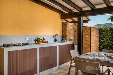 All'esterno, gli ospiti potranno godere di un ampio giardino privato con mobili da esterno dotato di doccia, barbecue e recinzione, ideale per rilassarsi e organizzare piacevoli momenti di convivialità.