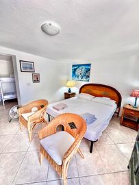 HA IL LETTO MATRIMONIALE E UNA CAMERA CON METÀ MURO PER LA PRIVACE E UN LETTO A CASTELLO, PER UN TOTALE DI 12 POSTI LETTO NELLE 5 CAMERE,