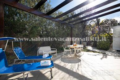 Una graziosa villetta, di circa 90mq con un bellissimo giardino e posti auto interni, nel cuore di Baia Verde, un polmone verde della città di Gallipoli a soli 150m dalla spiaggia libera e 200m dai servizi quali bar, supermarket, alberghi ecc. LA LOCALITA': Baia Verde è una località turistica molto ricercata x via delle spiagge e delle disco presenti in zona per cui molti ragazzi la ricercano per le due opzioni, ma anche molte famiglie x la comodità di raggiungere le spiagge. Dista 2,5 km dal centro di Gallipoli, dal lungomare Galileo Galilei ove sono presenti trattorie, chioschi e intrattenimento bambini, che si raggiunge o in macchina o in bici. COMPOSIZIONE VILLETTA: la villetta è dotata di giardino con 2 posti auto interni, al quale giardino si accede da uno scivolo ripido per cui non ci entrano le auto basse, stile sportivo, ma solo quelle alte, questa è una cosa molto importante poichè i parcheggi all'esterno si pagano al giorno. Vi è una copertura in legno che permette di mangiare fuori sia dalla parte anteriore della villetta e sia dalla parte posteriore del giardino vicino alla cucina.. i climatizzatori sono presenti solo nelle camere da letto, mentre in cucina presente ventilatore mobile. Cucina abitabile con divano letto matrimoniale 2 camere matrimoniali di cui una con tv in camera bagno con box doccia e lavatrice IT075031C200036602