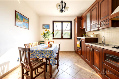 villa viene affittata ad uso esclusivo e dispone di circa 400 mq di giardino interamente recintato ideale per gli amici a 4 zampe, con posti auto riservati di cui uno coperto.Pergolato con divani , lettino prendisole,calcio balilla, barbecue amache per chi cerca il relax . Al piano superiore abbiamo un grande soggiorno con divano letto e tv 40 ,ampia e attrezzata cucina , bagno con doccia e veranda coperta ideale per colazioni e cene all 'aperto. Nel seminterrato vi sono due camere da letto entrambe con letto matrimoniale e letto a castello ,ripostiglio con lavatrice, bagno con doccia e un monolocale con accesso indipendente con letto matrimoniale e bagno con doccia. In totale la villa dispone di 3 bagni. ogni camera della villa è climatizzata e con zanzariere. A disposizione degli ospiti parco bici e wifi .