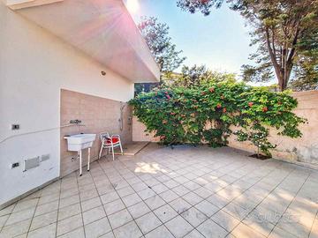 Una graziosa villetta, di circa 90mq con un bellissimo giardino e posti auto interni, nel cuore di Baia Verde, un polmone verde della città di Gallipoli a soli 150m dalla spiaggia libera e 200m dai servizi quali bar, supermarket, alberghi ecc.