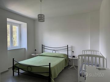 o il piano SECONDO ha una camera da letto con letto matrimoniale e una culla per bambini, una seconda camera da letto con 2 letti singoli, due bagni, una cucina e un soggiorno con divano letto (capienza massima 5 persone + bambino in culla).