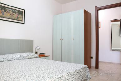Si affitta appartamento per quattro persone al piano terra di una villa indipendente, con ingresso e giardino privati. L'appartamento si trova a 800 metri dalla spiaggia di Simius e a 800 metri dal paese, in zona silenziosa (localitá "La Collina"). È composto da una camera matrimoniale, una camera con due letti singoli anche accostabili, soggiorno con divano, angolo cottura, un bagno con doccia, lavabo e bidet, un bagno esterno con lavabo e doccia.