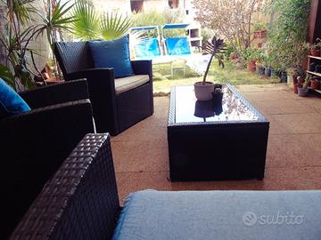 Si sviluppa su due livelli: al piano terra troverete un luminoso soggiorno con angolo cottura, che si apre su una veranda attrezzata, adiacente a un piccolo giardino, ideale per pranzi e cene all'aperto. Al primo piano, una deliziosa camera da letto, un bagno e un balcone.
