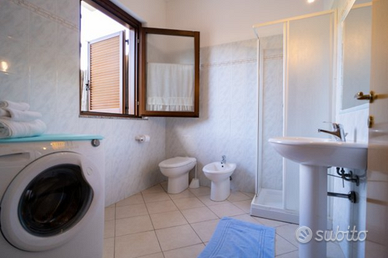 Villasimius villetta a schiera su 2 livelli, completamente rinnovata 2021, aria condizionata, ideale anche per 2 famiglie con 2 bagni completi con doccia e lavatrice, 2 camere, 5/8 posti letto comodi, 2 balconi con doppia esposizione, 76mq oltre a spazio esterno di 40mq con doccia e barbecue. Completa di stoviglie, frigo con freezer, lavastoviglie, TV lcd, forno tutti nuovi, phon asciugacapelli, stendibiancheria, ombrelloni e spiaggine. Biancheria da letto/bagno su richiesta. Disponibilità ricarica auto elettrica Solo 250 metri da supermercati e 600 metri da zona pedonale. Posto auto e moto riservato e chiuso. Assistenza professionale in loco 24h. Servizio transfert su richiesta e consigli su spiagge e ristoranti. Massima privacy e nessuna costruzione fronte immobile. Nel raggio di 2\3 km potrete raggiungere tutte le spiagge e scogliere presenti nella penisola di Villasimius (circa 20). L'ubicazione dell'appartamento permette di raggiungere le spiagge senza passare necessariamente per il centro del paese. Spostandosi di qualche chilometro si potrà apprezzare la bellissima spiaggia di Costa Rei situata tra i comuni di Castiadas e Muravera. Dal porto partono escursioni in barca verso l'isola dei Cavoli e le spiagge incontaminate, con pranzo a bordo a base di pesce. Inoltre vi sono molti itinerari con sentieri naturalistici. Da non perdere il mercato rionale del sabato mattina che dista 200m dall'appartamento ove potrete trovare prodotti tipici della Sardegna. Non si accettano animali taglia grande e media. Vietato fumare all'interno. Possibile invio altre fotografie. IUN Q2132 Prezzi su richiesta variabili in base al periodo e numero persone