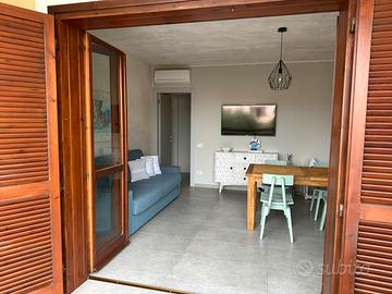L'appartamento Rebecca House è situato nella splendida e rinomata località turistica di Villasimius, a soli 200 metri dal centro, ricco di ristoranti, locali, negozi tipici e market, e a 2 minuti di auto dalle più belle spiagge del sud Sardegna. Ubicato al primo e ultimo piano di un recente edificio, è composto da un soggiorno con angolo cottura dotato di piano a induzione a 4 fuochi, forno, microonde, lavastoviglie, macchina del caffè a cialde, bollitore, frigorifero con freezer, smart TV 50" e un comodissimo divano letto matrimoniale. Dal soggiorno si accede a un'ampia terrazza con salottino attrezzato, ideale per cenare, rilassarsi e godere della vista circostante. La camera matrimoniale si affaccia tramite un balcone su una strada privata e silenziosa ed è dotata di un armadio ad ante scorrevoli, letto matrimoniale, smart TV e cassaforte. Il bagno finestrato è composto da doccia, bidet, lavatrice con carica dall'alto e asciugacapelli. L'appartamento offre ogni comfort: aria condizionata, impianto satellitare, wi-fi gratuito in tutti gli ambienti e un ampio parcheggio privato. Fermata del bus navetta per le spiagge a soli 30 metri. Biancheria letto e set asciugamani inclusi. Pulizie finali comprese. Le tariffe variano in funzione del periodo. Per maggiori informazioni, sempre disponibile al numero 3493175550. Goditi una vacanza all'insegna dello stile in questo spazio in centro. Numero: IT111105C2000S5325
