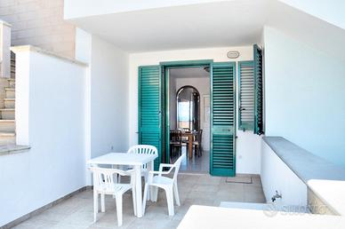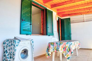 Casa vacanze trilocale al piano terra di una villetta a schiera, situata nel centro di Lido Marini, a soli 100 metri dalla spiaggia e a pochi passi dal lido attrezzato "Baia degli Dei".