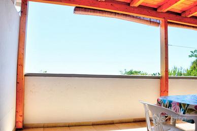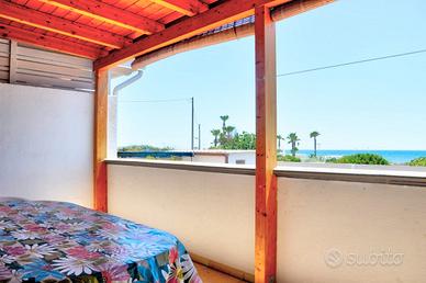 L'abitazione è composta da soggiorno/pranzo con tinello, cucinotto, due ampie camere da letto, bagno con doccia e doppia veranda di pertinenza, di cui una con vista mare sul retro. Possibilità di posto auto sul fronte dell'immobile.