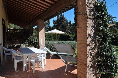 affitto appartamento in villetta da 4 +3 posti, 2 bagni di cui uno con lavatrice esclusiva,2 camere con aria condizionata, soggiorno con divani letto, sala pranzo/ cucina ampio giardino con ombrellone e lettini prendisole e barbecue, in campagna a soli 2 km dal bellissimo mare del golfo di Baratti,in residence con: pineta, campo da palla a volo e Ping-Pong, lavatrici, Wi-fi free, paese con negozi ,farmacia e minimarket a 700m,preventivi a richiesta. Completo dal 1 al 15 agosto.
