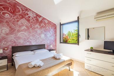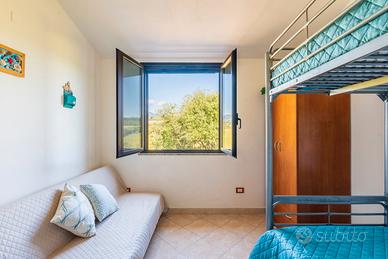 Giardino prato verde ( circa 70 mq) completamente recintato e con rete privacy, doccia esterna, piccola veranda attrezzata con tavolino e sedie, ingresso soggiorno con ampia sala (circa 40 mq) arredata con tavolo e sedie per 8 persone, armadio, TV led 32 pollici, ampio frigorifero con congelatore, macchina per caffè con cialde, caffettiera tradizionale.
