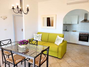 La casa è disposta su un unico piano, entrando si trova un soggiorno con angolo cottura (piano ad induzione, frigo con congelatore e forno), un salotto con zona pranzo e un divano letto ad una piazza e mezzo, due camere da letto matrimoniali ed un bagno con box doccia. Ogni stanza è dotata di A/C indipendente.