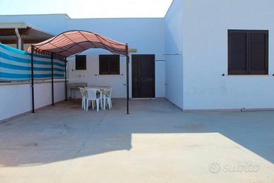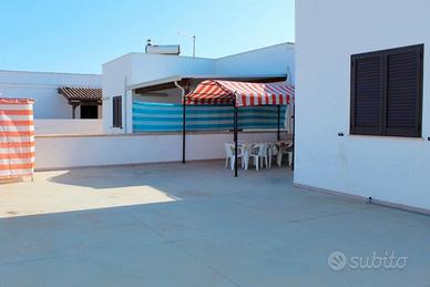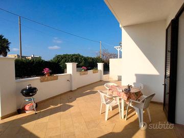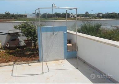 Bellissima e nuovissima casa vacanza a 50 metri dal mare e a pochi minuti dalle spiagge di Torre San Giovanni. La casa vacanza e composta da: tinello, cucinino, disimpegno, tre camere da letto matrimoniali, due bagni di cui uno con doccia per un totale di 9 posti letto, spazioso balcone avanti e un bel giardino dietro con doccia esterna dove poter passare delle serate fuori e mangiare comodamente fuori diversi posti auto a disposizione. Bellissima soluzione per chi vuole godere della vicinanza del mare salentino e passare momenti di relax. Zona molto ben servita con bar, supermercato, tabacchi, braceria, scoglio basso e accessibile, mare stupendo, per chi ama la spiaggia la può trovare a pochi km.