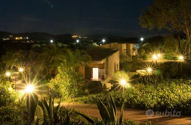 Villa ad angolo di un gruppetto a schiera detto ventaglio, con vista mare, immerse in un paesaggio incontaminato nella macchia mediterranea, a soli 100 m dal mare: spiaggia raggiungibile con un breve guado ad altezza vita, poi percorribile se lo si desidera a piedi per più di 1 km per trovare il proprio angolo di paradiso.