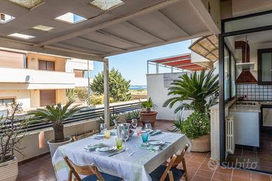 La villetta dispone di soggiorno climatizzato con area relax con divano letto matrimoniale ed un ulteriore posto letto, cucina completa di ogni comfort( frigo con freezer, piano cottura e pentolame e forno), un bagno con box doccia, una camera da letto matrimoniale climatizzata. L' area soggiorno e la camera da letto si affacciano sulla veranda vista mare attrezzata con mobili da giardino barbecue e doccia esterna dove sarà possibile suggestionarsi con la vista del mare e i magnifici tramonti. Posto auto riservato nell'area garage sottoposta al residence, per il massimo confort nel portare la spesa e per non avere problemi di parcheggio (costo posto auto non incluso, su richiesta.)