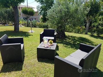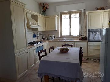Villetta in collina a 6 km da mare. Composta da 2 camere da letto 1 matrimoniale e l'altra con 2 letti singoli . 1 bagno con doccia e finestra, cucina completamente attrezzata soggiorno con divano letto . Aria condizionata.Porticato e giardino completamente recintato adatto agli amici a 4 zampe . Barbecue a disposizione